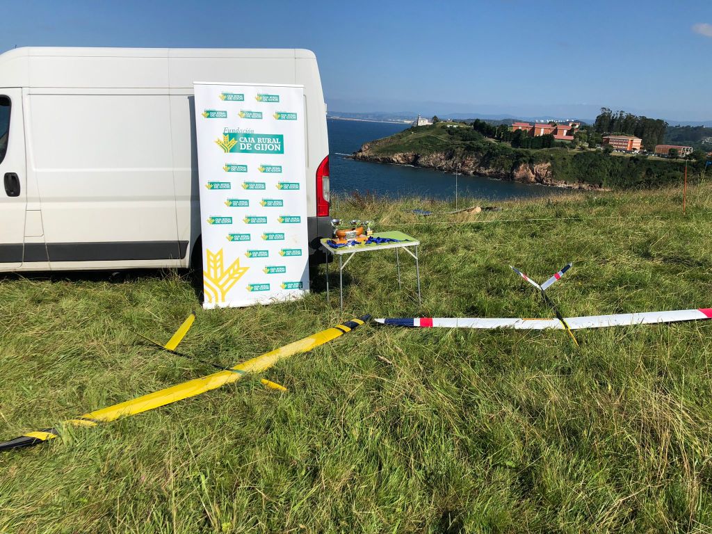 La primera de Félix, que al empezar la segunda manga, en un lanzamiento flojo al borde de la ladera, el velero le entró en pérdida y no pudo o no supo recuperar, y su Feestyler 3 se posó tímidamente a 6 metros sobre los tojos del acantilado. Allí se quedó hasta el final de la prueba cuando fue rescatado con la ayuda de todos los pilotos, juez y Jose Manuel Antuña. ¡Gracias a todos!!